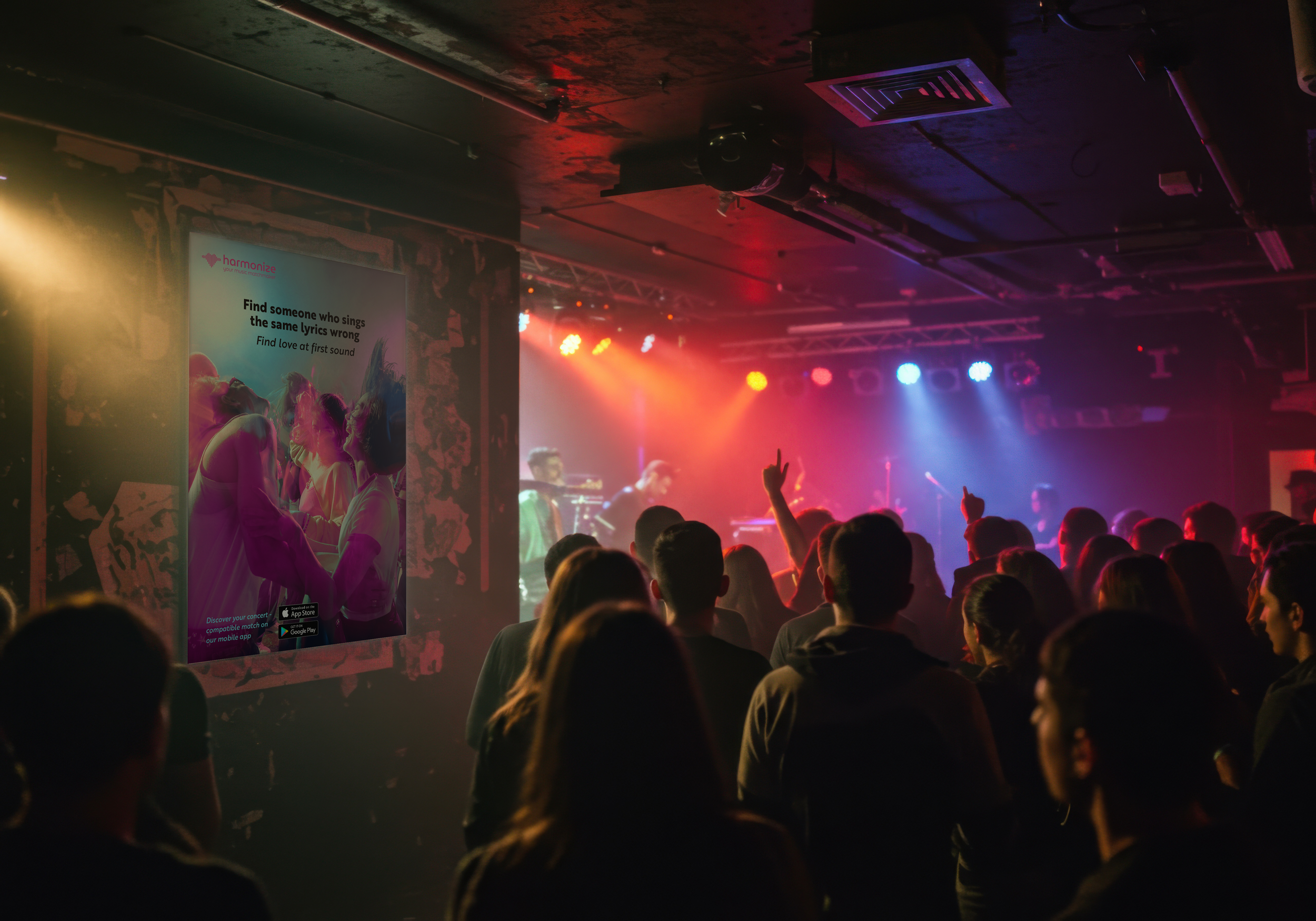 Dating apps feel repetitive and disconnected from real life, while meeting people at concerts feels unsafe or awkward despite shared music interests. Harmonize matches users who are attending the same concerts, turning the event itself into the first date. This app removes uncertainty when both dating and meeting new people by combining music taste, live events, and social discovery.