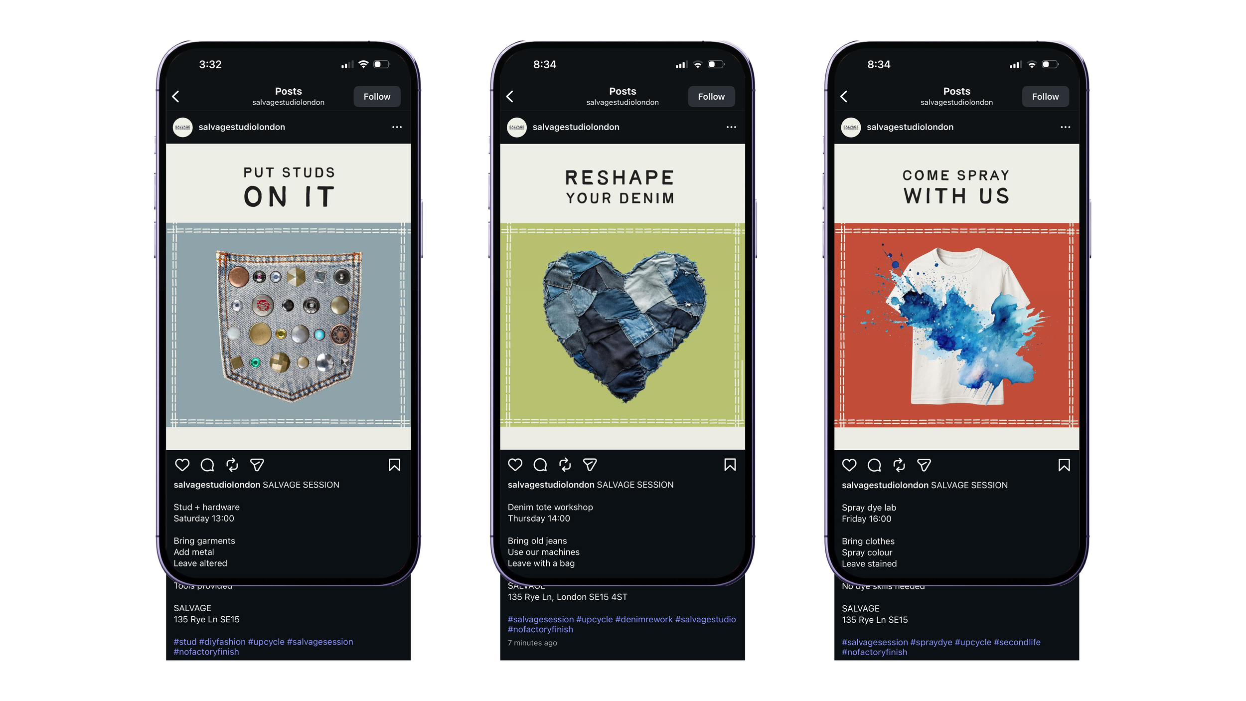 Core idea: The studio as both a social and creative space, advertising the specialized upcycling sessions on instagram.
