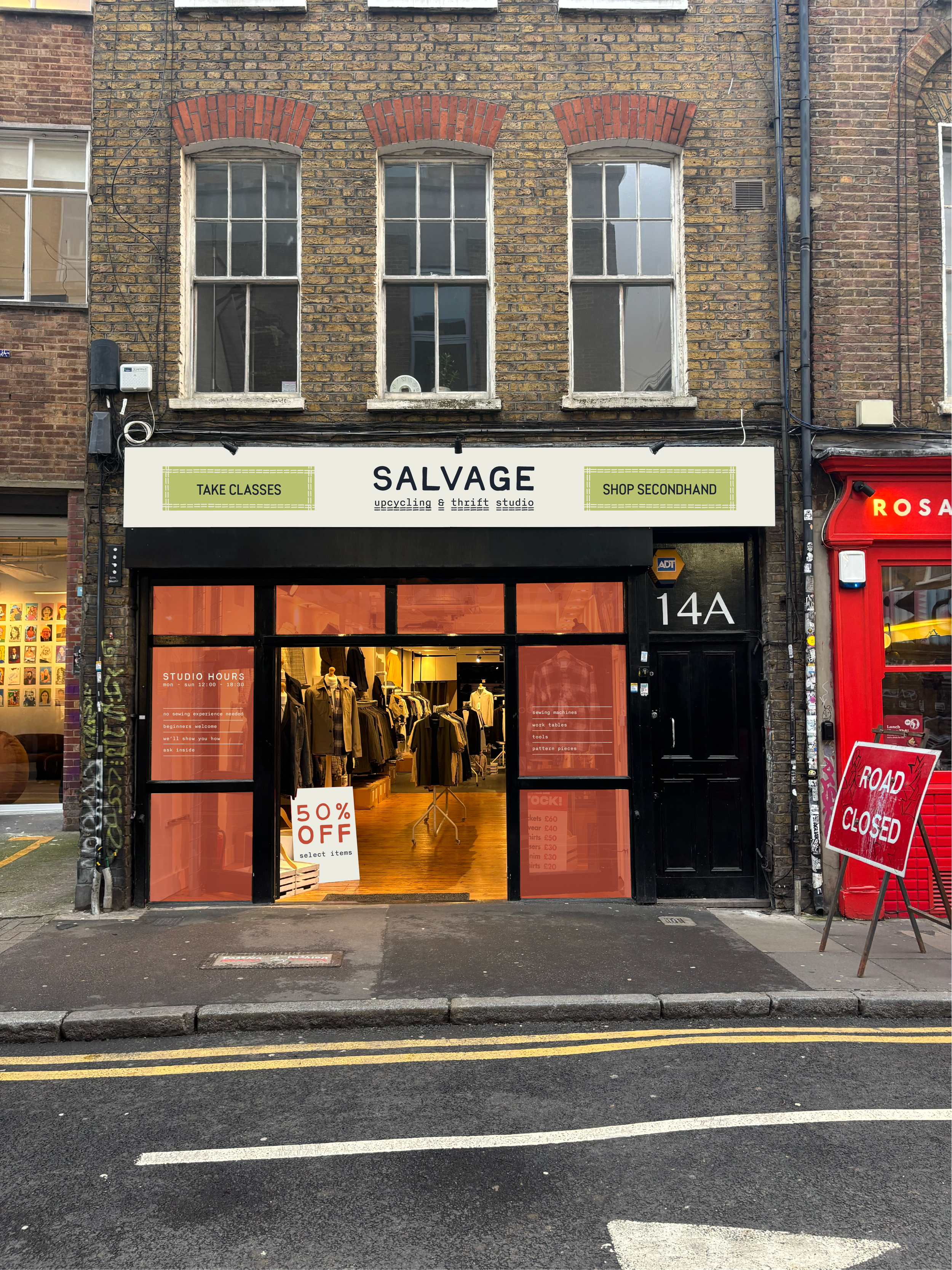 London lacks accessible sustainable fashion options. Second hand and vintage stores exist, but are often expensive & positioned as luxury. At the same time, repair and tailoring skills are declining & services are costly, causing wearable clothes to be discarded and replaced with fast fashion. Salvage studio operates as both a thrift and up-cycling workspace where customers bring their own garments or purchase low-cost second hand pieces onsite. They can access basic tailoring services, guided upcycling sessions, and shared tools such as sewing machines and materials.